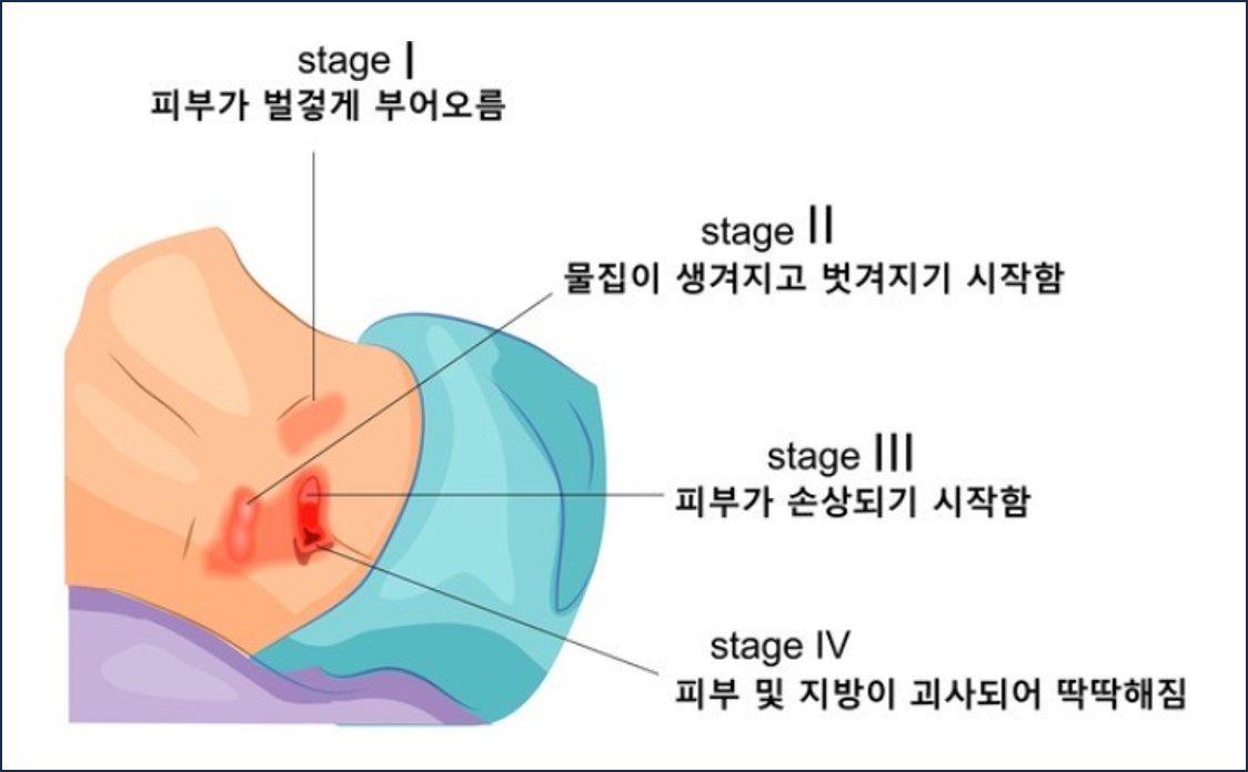 침대에서 움직일 때 피부와 침대가 마찰을 일으켜 피부 표면이 손상될 수 있으며, 이러한 마찰은 피부 장벽을 약화시키고 욕창 발생을 촉진합니다.
